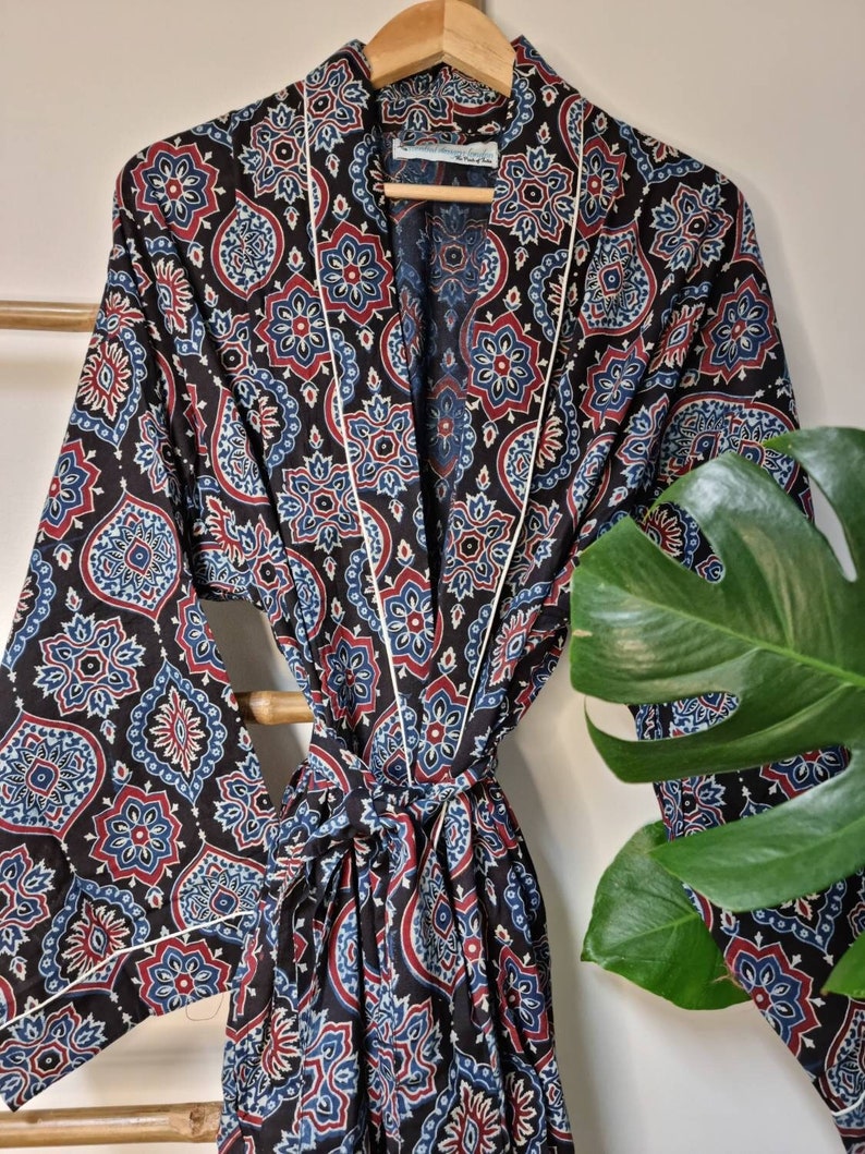 Hand-block prints robes which are printed in Gujarat/Rajasthan (western India) and then beautifully made by our wonderful team based in Jaipur.