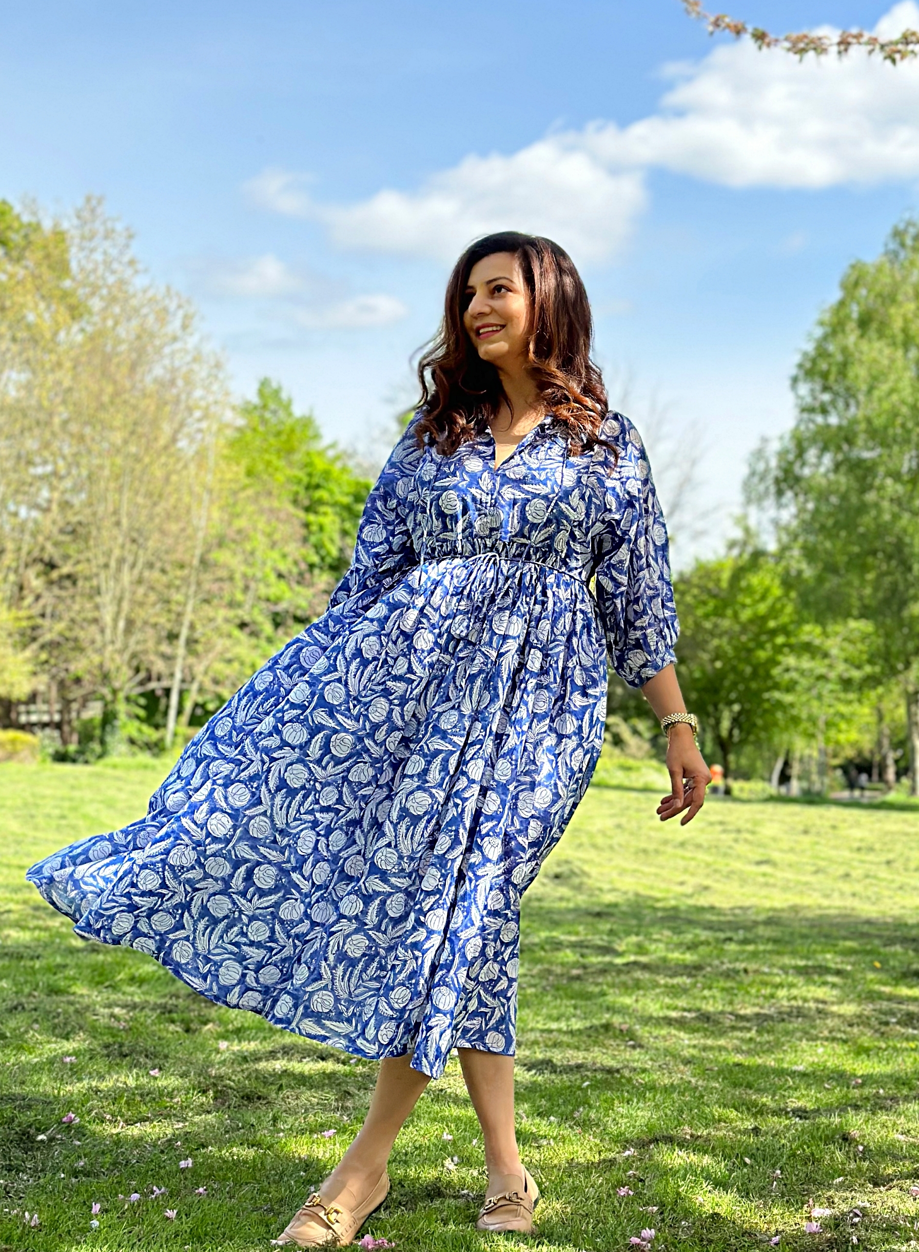 Express Urgent Upgrade at Checkout only for Domestic Uk Pre Christmas Deliveries applicable for Mainland only until Friday 12 Noon .Elegant Block print Midi Dress stitched to be your next comfy dress this Summer and to Ease into Autumn with Jumpers and Polo necks .