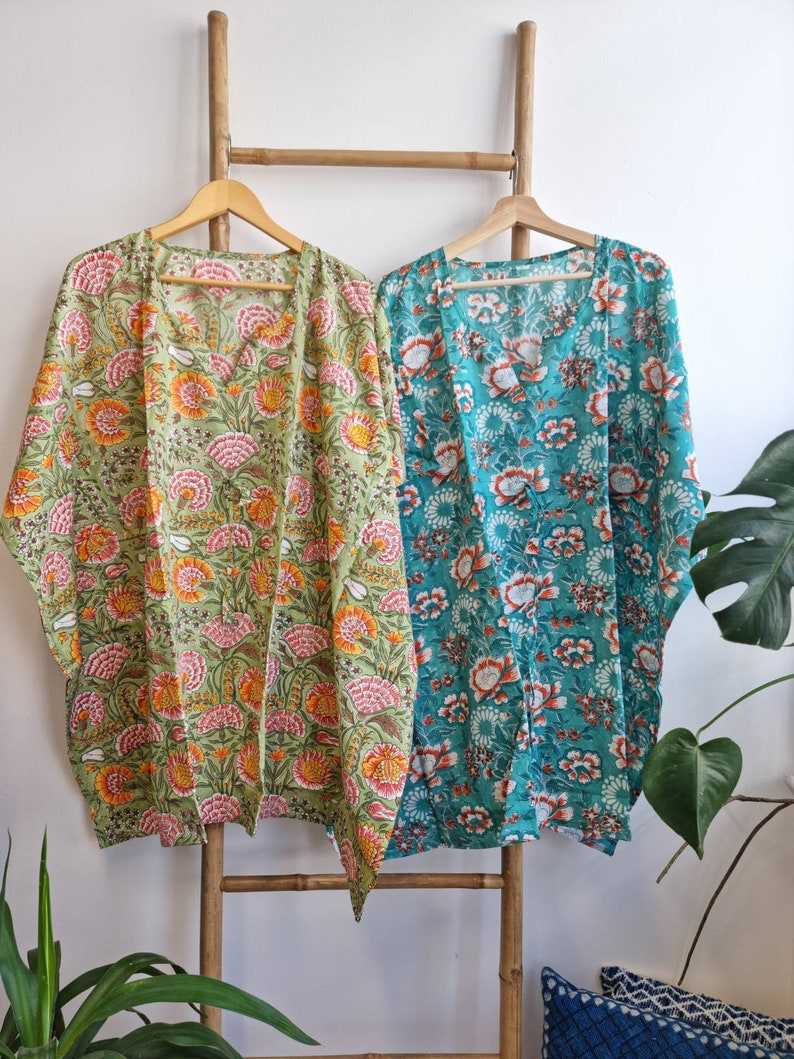The magic of Block prints using wooden blocks and natural dyes in small villages of Rajasthan, flowing into Comfortable west Stylish Kaftans .