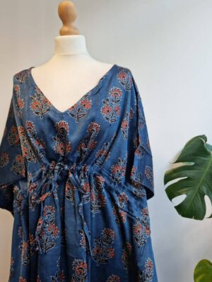 Mashru Silk Kaftan Ajrakh Indigo Blue Red Mughal