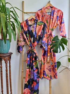 The magic of Block prints using wooden blocks and natural dyes in small villages of Rajasthan, flowing into House Robes/Kimonos.