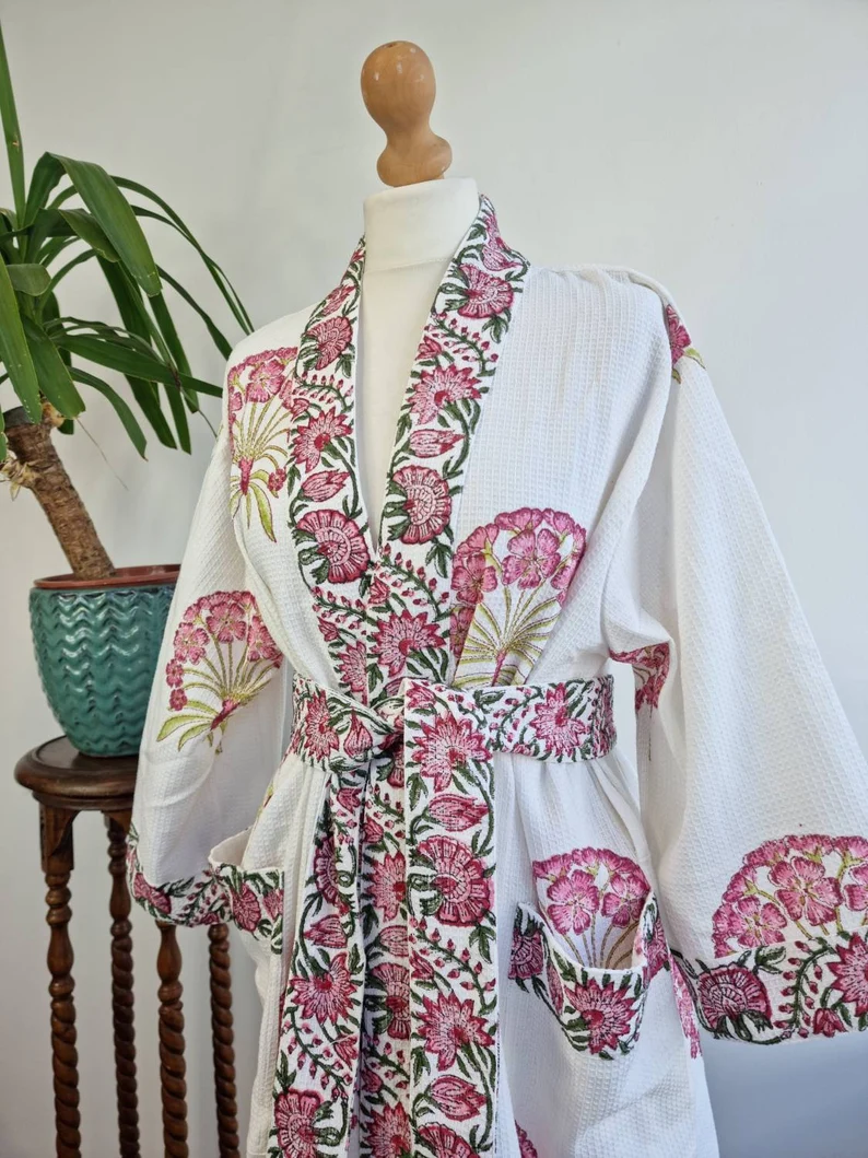 Pure Cotton Kimono with Hand Block printing .Pure cotton is most gentle on skin and also an easy care.
