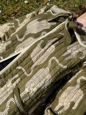 Smart Peter Pan Collar with a Statement Bow ! Pure Cotton Quilted Jacket which is Gorgeous on Each Side .