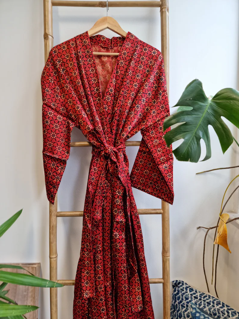 /    /  Clothing, Her's, Kimonos/Robes, Silk Blend  /  Mughal style Mashru Silk Kimono Ajrakh –