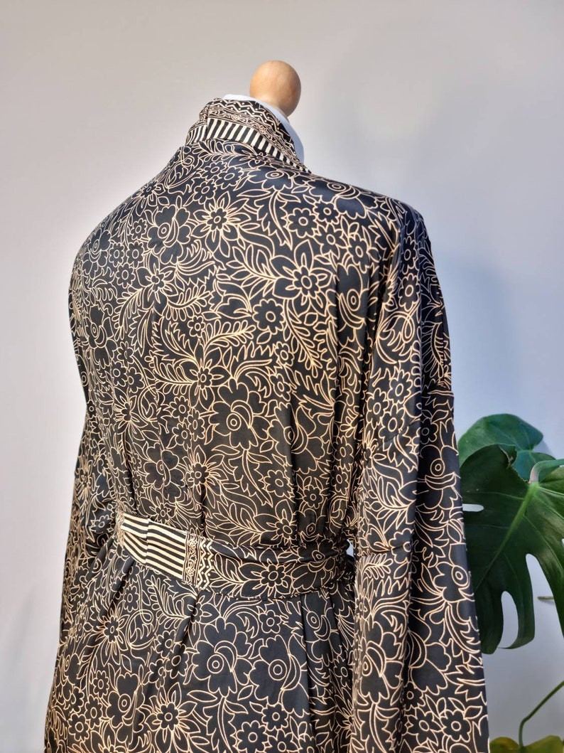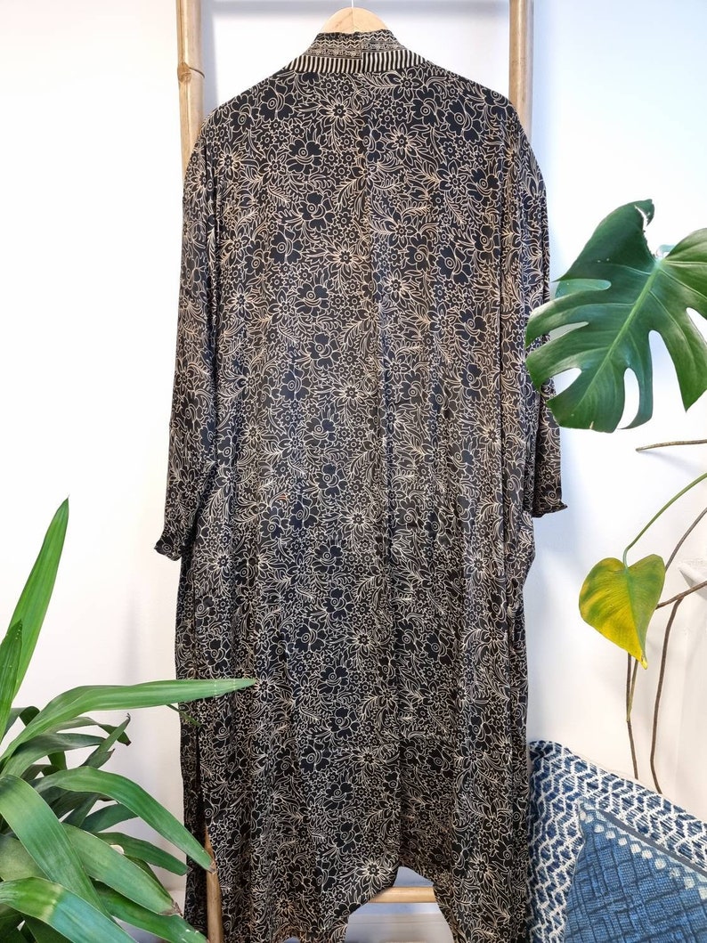 /    /  Clothing, Her's, Kimonos/Robes, Silk Blend  /  New Silk Sari Boho Kimono- Oriental Persian Black Rose Beige