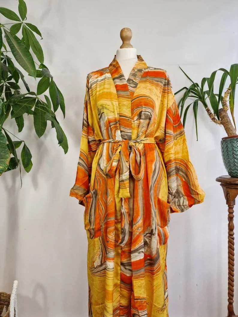 Lounge wear essentials with ethics . Stylish Kimono in Surplus silk blend fabric . Very Luxurious to Touch 🙂