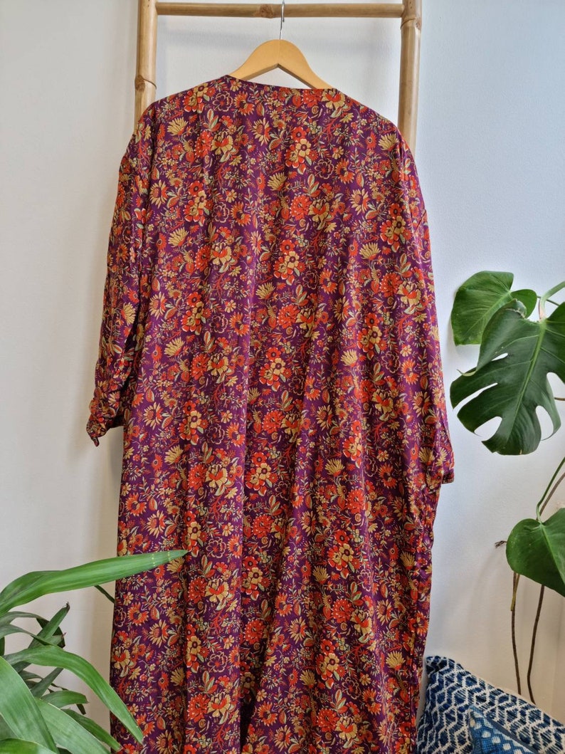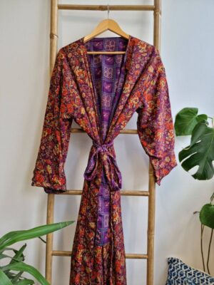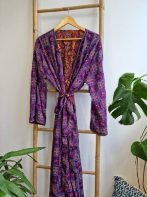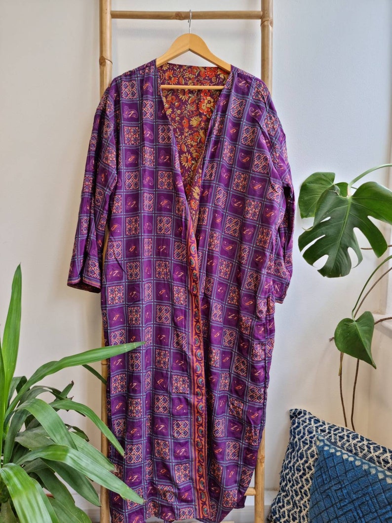 This is a fully reversible Kimono made from two different fabrics. Get two looks, one Regal another Quirky.