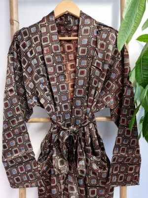 /    /  Clothing, His, Kimonos/Robes, Silk Blend  /  Men’s Silk Mashru Ajrakh Handprinted Kimonos In Geometric Print