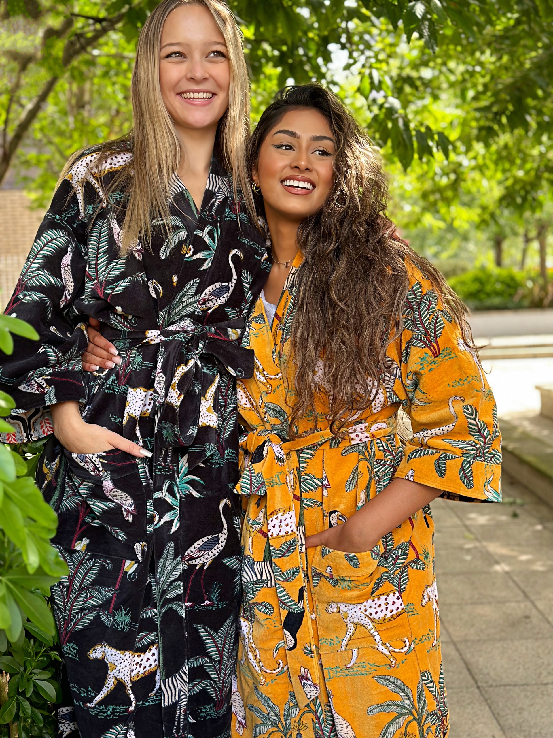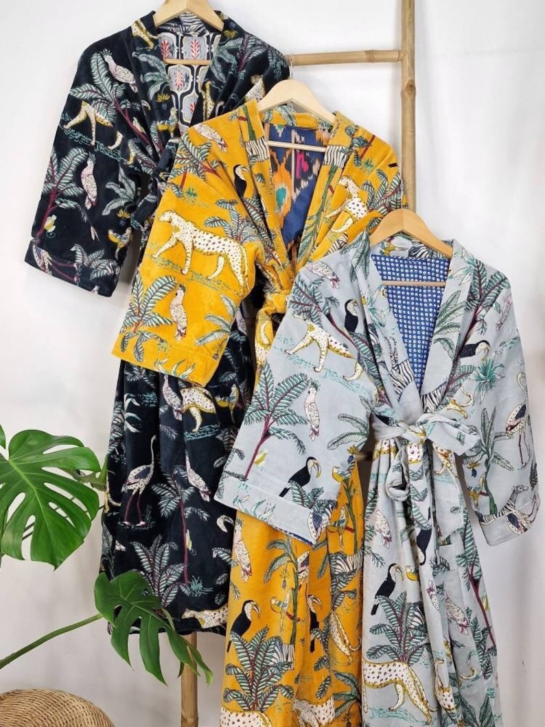 January 2023 Latest Arrival!! Luscious Luxurious Printed Velvet Robe with Indian Soft Cotton in Quirky Colours .