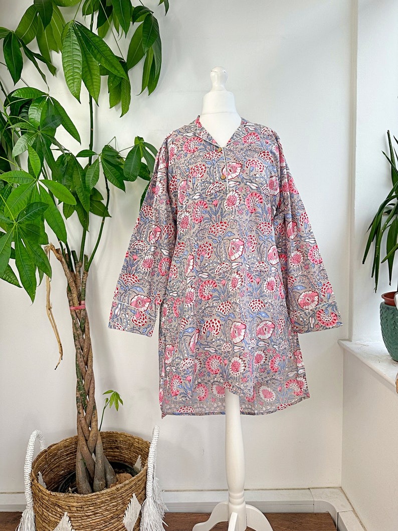 A good night sleep comprises of many elements but the one closest to your skin is our super comfortable handmade cotton Night Shirt. Hand-blocked printed supporting the local artisans and Eco friendly sustainable cotton for a soft feel. Easy care for long life to promote slow fashion . Wooden Buttons and comes in a Matching Pouch bag for easy compact travel packing .